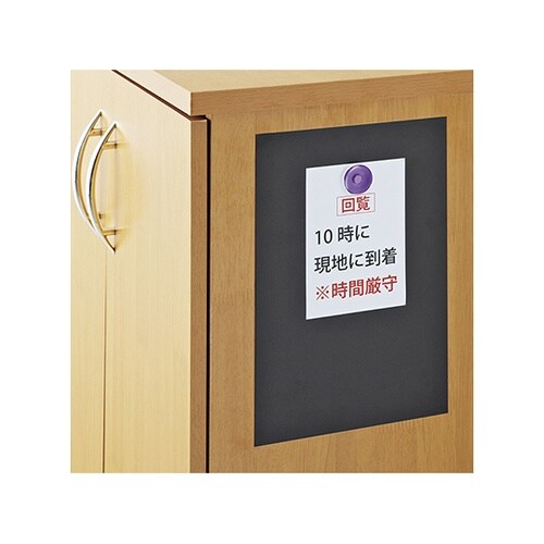 スチール(鉄粉)を含んだラバーシートで、ポスターなどをマグネット(別売)で掲示することができます。裏面に粘着剤が付いています。 |