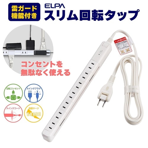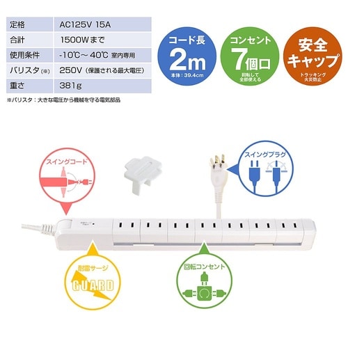 耐雷7個口 2m スリム回転タップ ホワイト WBS−SL702SB(W)