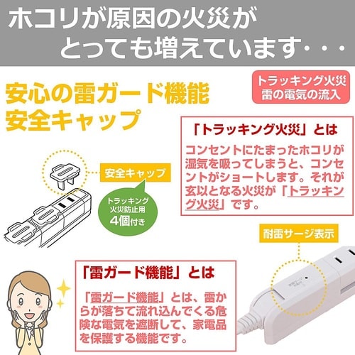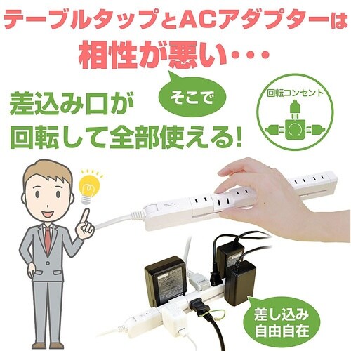 差込口が回転することで、無駄なく差せる雷から接続機器を守る耐雷サージ機能付耐トラッキングカバーで電気火災を予防コードが上下180°に回転、ラックや壁面に沿わせてスッキリと配線仮固定用アタッチメントでテ |