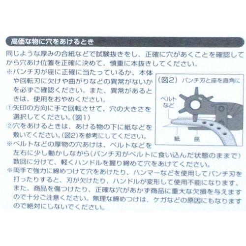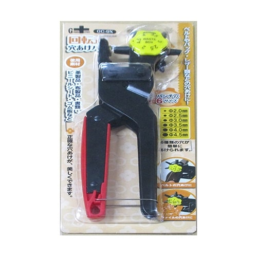ベルトやバッグ、レザー類などの穴あけに。革製品、布製品、書類、ビニールシート、ゴム板などに使用できます。穴サイズは直径2.0、2.5、3.0、3.5、4.0、4.5mmの6種類のサイズに対応します。正 |