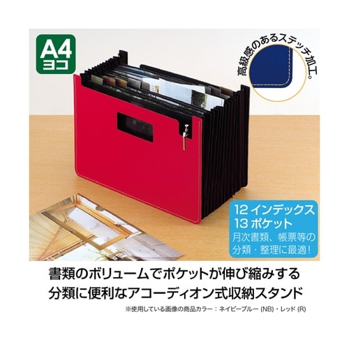 書類の量によって伸び縮みする便利なアコーディオン式収納スタンド書類のボリュームによってポケットが伸び縮みする分類に便利なアコーディオン式の収納スタンド。月次書類、帳票、取扱説明書等の分類整理に最適。W |