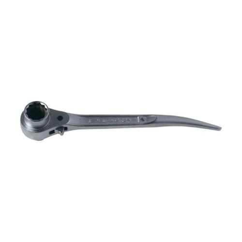正逆は切り替え爪式です。大径サイズを締める時に力をかけやすい形式です。ソケット部はナットが貫通しない安全設計です。シノ部は番線を巻く際に適した形状です。19mm、21mmを多く使う方に。 |