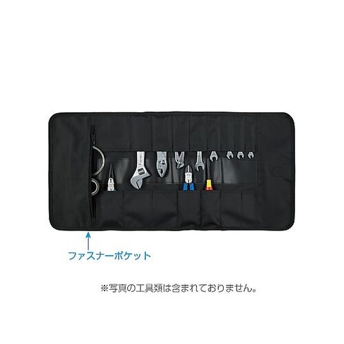 工具がズレ落ちにくいゴムストッパー付小物部品が入るファスナーポケット付 |