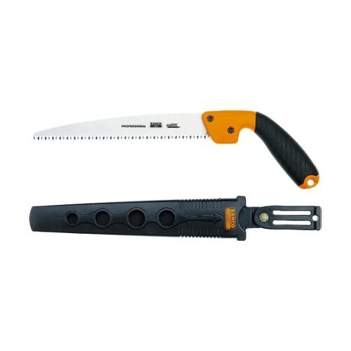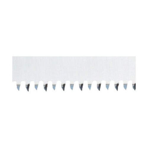 独自の凹型テーパー設計のこ身に、さらに逃げ角を工夫した新JS設計歯です。片手で高い枝を切断することができます。生木剪定に。 |