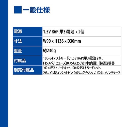 DC12Aレンジで大電流の測定可能。簡易ミラー付スケール板。電池チェック、LED点灯チェック機能付。 |