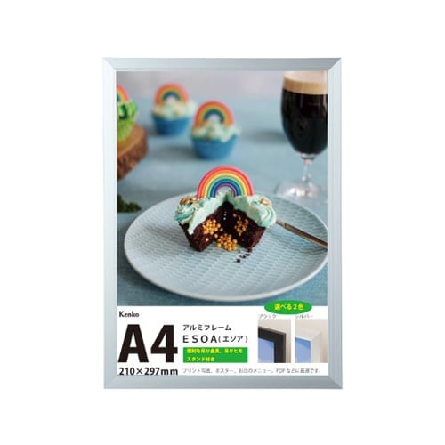 A4サイズに合わせて作った額縁。マット台紙がなく、そのままプリントを入れる「OAフレーム」。縦置き・横置き両方可能なので、写真はもちろん、お店のメニューやPOPの展示にもご利用いただけます。スタンド付 |