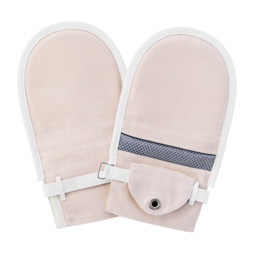 危険な行為やおむついじりに対応する、アイデアホック採用の介護用手袋手のひら側に保護パッド入りでより物をつかみにくい設計交換可能なベルトカバータイプにリニューアルしました。ご本人には外しにくい構造のアイ