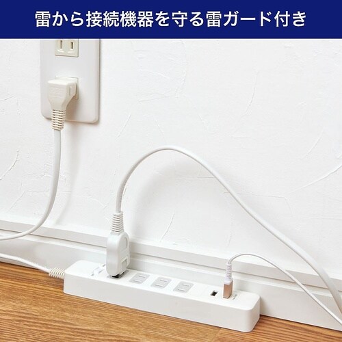 スマートフォンやタブレットを2台同時充電可能(USBポート)雷から接続機器を守る耐雷サージ機能付ブレーカー内蔵集中スイッチ過電流を防止するブレーカー内蔵ホコリ防止の扉付コードは保護被ふく付安全構造スッ |