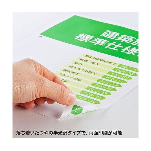 耐水性抜群の特殊加工を施したカラーレーザープリンター専用紙で、ラミネートなしで使用できます。半光沢の落ち着いたツヤで、両面印刷可能です。0.12mmとかさばらず、折り曲げやすい厚みです。野外イベント用 |