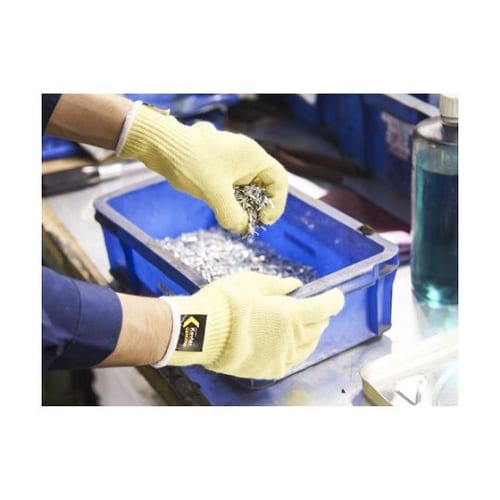 ケブラーR繊維を使用しており、耐切創性、耐摩耗性に優れています。素材機能として、耐熱性、難燃性(自己消火性)などの優れた熱特性をもっています。作業性に優れた薄手タイプです。自動車関連。金属加工。 |
