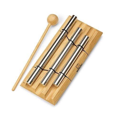 木製の台座を持ち、付属のマレットでチャイムを鳴らしましょう。糸によって浮いたチャイムバーが美しい響きを持った非常に長い持続音を奏でます。 |