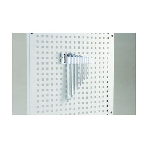 9サイズの六角棒レンチを引っ掛けて管理できます。マグネット式なので、穴を開けずに簡単に取り付けできます。六角棒レンチの収納。 |