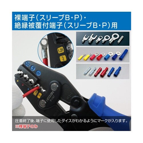 1丁で2種類の端子、複数サイズを圧着可能なコンパクトマルチタイプ |