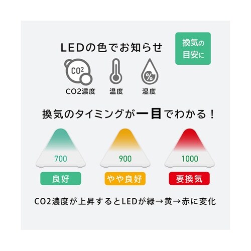換気のタイミングを色と数値で分かりやすくお知らせ。 |