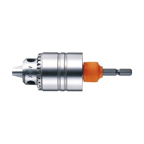 キーレス仕様、解除キー付の兼用タイプです。ドリルが噛みついて外せなくなった時は、インパクトドライバーの衝撃回転で外せます。解除キーも使えます。充電ドライバーに取り付けてドリルでの穴あけ、軸付砥石での研 |