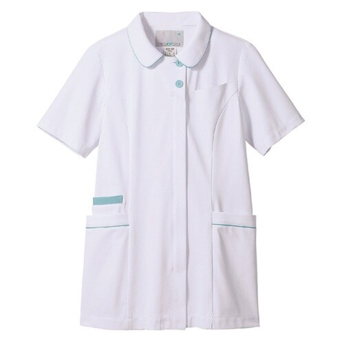 ナースジャケット 半袖(白/Mサックス)S MN500−0121