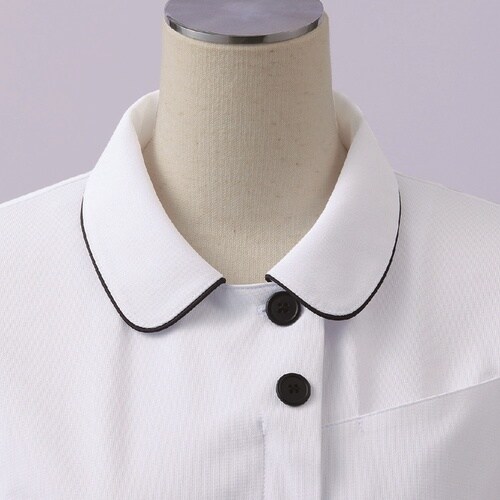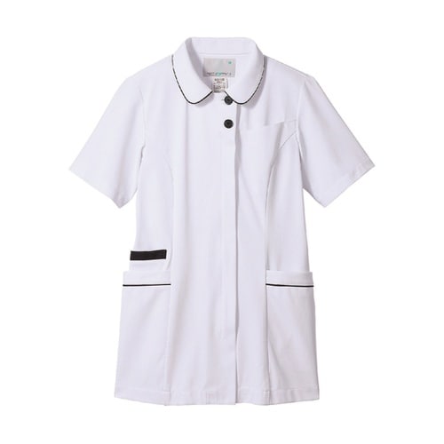 住商モンブランのレディスナースジャケットボディラインが目立ちにくいキレイなシルエット、独自のパターン設計により体型の個人差をカバーしますまた、ストレスを感じさせないネックラインや腕の上げ下げがスムーズ |