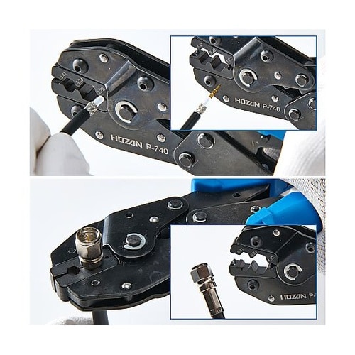 BNCコネクター用計測器、コンピューターLAN、放送機器等に使われる、BNC/TNC/BNCCコネクター用の圧着工具です。中心コンタクトとスリーブ(抜け止めリング)の圧着ができます。 |