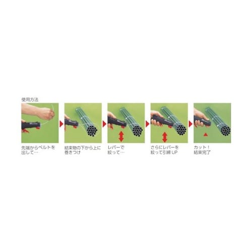 フリーサイズで結束でき、結束後にゴミも発生しません。(ニッパ等で切る必要がない)本体、ベルト、クリップすべて脱塩ビ樹脂使用のため、焼却時ダイオキシンの発生がほとんどありません。電気工事、配線の結束作業 |