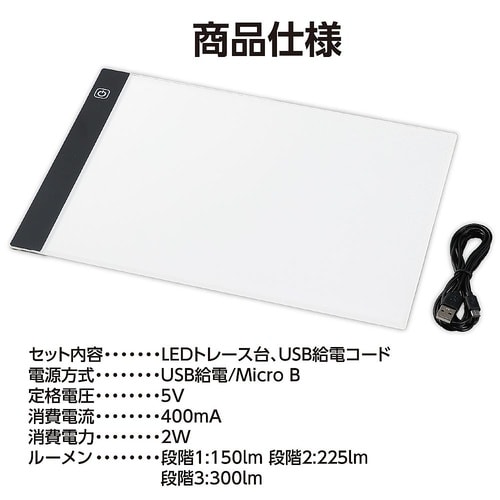 5mmの極薄トレース台!3段階の調光が可能 発光強度300−350lm (約20−30W相当)フラット構造による使いやすさ |
