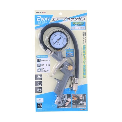 米式(自動車)・英式(自転車)対応圧力計付きだから空気圧を確認しながらラクラク充填自動車・バイク・自転車のタイヤの空気圧チェック・空気充填に |