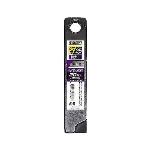 切れ味重視の鋭角研磨刃厚0.7ミリで刃の反りが少なく、極めてハードな作業にも対応できます。大型刃では少し頼りなく感じる厚手の素材のカッティングに適しています。プラケース包装の20枚入り。 |