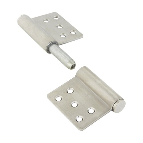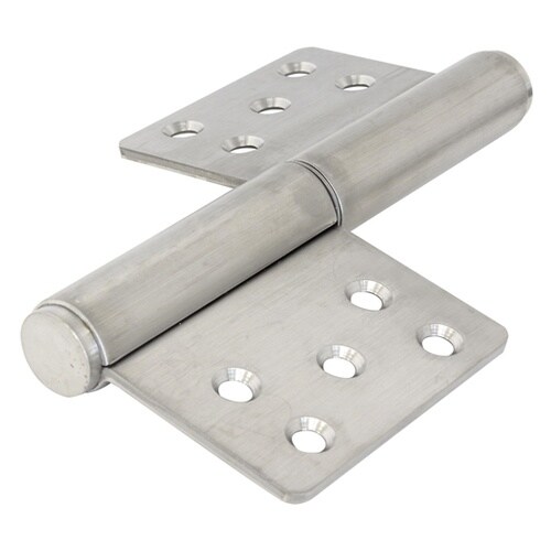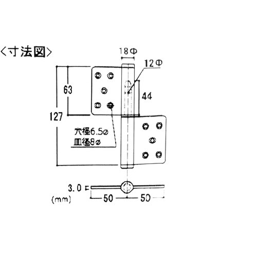 左右兼用の旗丁番です。室内物入等扉用取り付けの際、木部の割れやネジの破損を防ぐためキリで下穴を開けてください。付属ビスはございませんので、市販のビスをお買い求め下さい。 |