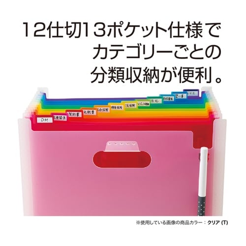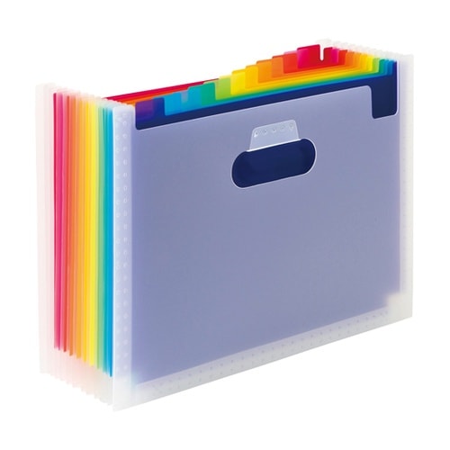 ボリュームに合わせて伸び縮みする12色のグラテーションが美しいレインボーカラーの収納スタンド色別仕切りでさらに検索性を高めたドキュメントスタンドA4クリアーファィルがそのまま入るゆったりワイド設計12 |