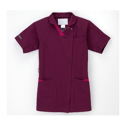 スクラブのシャープな印象と襟付きチュニックのきちんと感を併せ持つハイブリッドメディウェア。素材はなめらかなタッチと涼感・高ストレッチ性を持つ高機能ニットを使用しています。さらにエアーアームカットを搭載 |