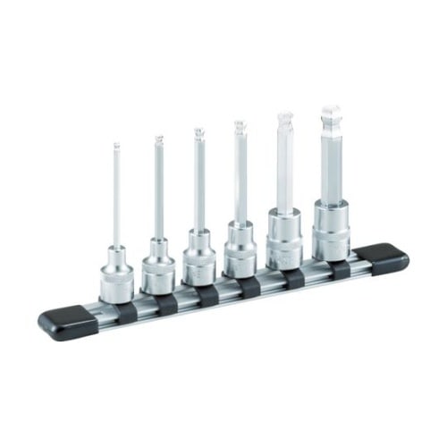 角度を付けて使用するボールポイントタイプは仮締めに便利です。ソケットの取り外しが容易なアルミタイプのソケットホルダで作業効率がアップします。六角穴付きボルト・ねじの締付け、緩め作業用。 |