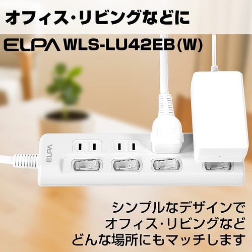 LEDランプ スイッチ付タップ4P2m上 WLS−LU42EB(W)