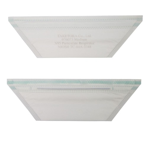 米国NIOSH規格による塩化ナトリウム微粒子に対し、95%以上の捕集効果を持っています。(N−95対応)フェイスラインに密着し、高い捕集効率を発揮します。ノーズブリッジ:ポリエチレン、鉄芯 |