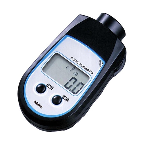 手の平サイズのコンパクト設計の回転速度計。被測定物の回転軸中心から離れた場所から計測する被接触タイプ。rpm、cm/s、m/min、m、kmなど 幅広い単位での換算表示が可能。文字高12mm5桁表示の |