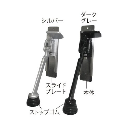 ペダルを踏むだけでストッパーが上がりドアストップをワンタッチ解錠できます。本体スライドプレートはずれ止め防止の形状ですのでズレによるドアへのキズを防ぐ。 |