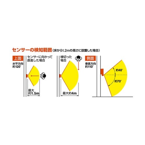 センサーで感知して人がいることを点滅して知らせてくれます。相手に対して注意を促す事ができます。死角や曲がり角、人通りが多い通路の扉や非常口・階段など、薄暗い箇所にある扉への取付けに。 |