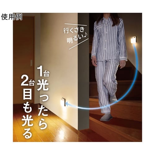 センサー式で人が通ると周りを照らすLEDライトワイヤレスで数台を同時点灯できるので、暗闇のその先も明るく照らすことが可能です。(ワイヤレス感度20mまで)階段を上がった(降りた)その先、廊下を曲がった |