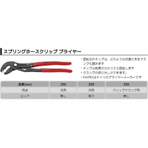 回転式のチップは、どのような位置にあるクランプでも安全に作業できます。テコの原理を最大限に利用しているので、クランプの開閉作業が簡単にできます。燃料ホース、真空管、吸引ノズルなど様々な用途に適していま |
