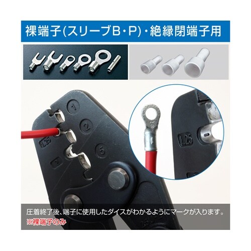 1丁で2種類の端子、複数サイズを圧着可能なコンパクトマルチタイプ |