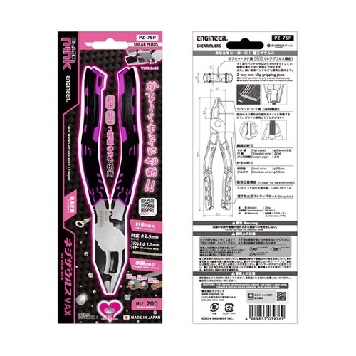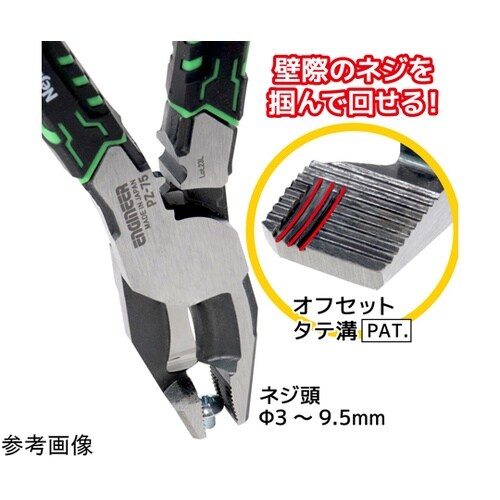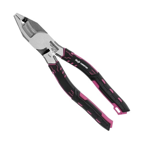 ゲンバ女子御用達「BLACK PINK」シリーズ。ネジ外し機能を搭載した、電設工事用の多機能ペンチ。鋭利なせん断刃で、VVFφ2.6×3芯をラクラク切断できます。潰れたネジ、錆びたネジを先端のタテ溝で |