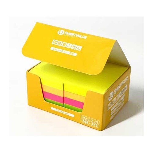 スマートバリュー 強粘着ふせん ビビッド混色 75×50mm 10パッド入 P611J−V−10 A04F-0267