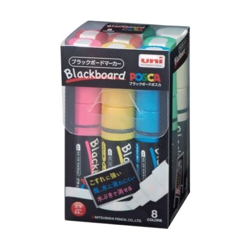 水性顔料マーカー ブラックボードポスカ 太字角芯 8色セット PCE2508K8C