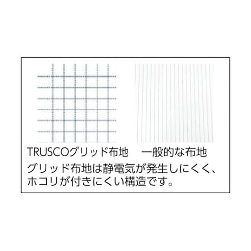 制電糸もグリッド仕様により優れた制電性を維持できます。高品質で洗濯耐久性も兼ね備えた商品です。1/2の綾織生地を使用しています。クリーンルーム、ちり・ホコリ・静電気対策の必要な作業に。