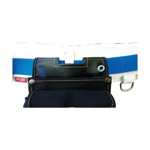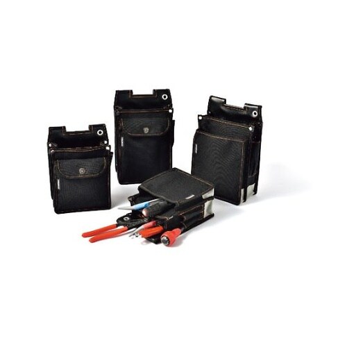 電気工事業者向けの腰袋です。ハーネス装着時でも使用可能な、背割れベルト通しです。丈夫な国産厚綿布を使用しています。パラフィン防水加工を施しています。ベルト通部分にヨレ止め付です。前面にフタ付ポケットが |