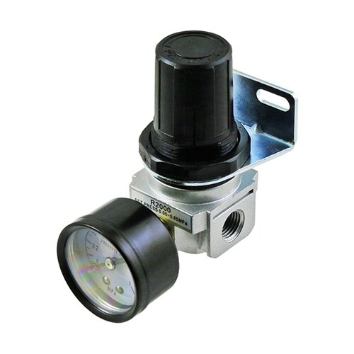 エアー圧力を設定圧力に調整可能!一目で圧力を確認できる圧力ゲージ付き |
