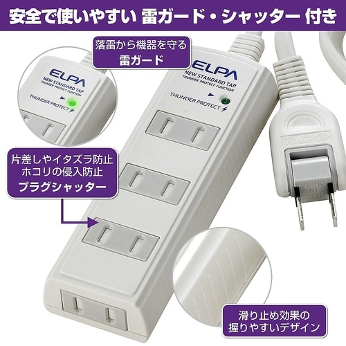 朝日電器 耐雷 コード付タップ4P3m 白 WBT−4030SBN(W) A04F-0494