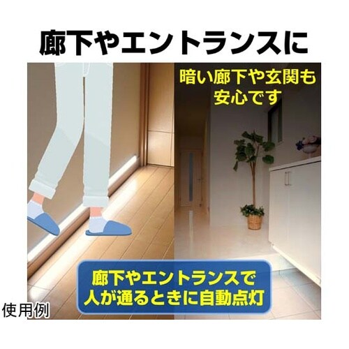 暗い場所で人に反応して自動で点灯し、約15秒後に自動で消灯します。別売の連結子機(31cm)を3台まで連結可能。 ※61cmの連結子機は使用できません。付属マグネットホルダーで角度調整可能導光板使用で |