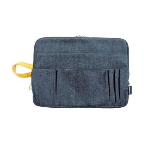 耐久性のあるデニム生地を使ったPC用のケースです。前面ポケットに充電器・メモリやスマホなどを収納できます。インナーバッグとしても使用できます。クッション材入りです。デニム生地なので使うほど味がでます。 |