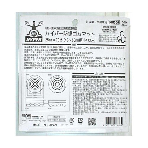 ハイパー防振ゴムマット 洗濯機・冷蔵庫用 ライトグレー 高さ25×70φmm 4個入 EGH−006