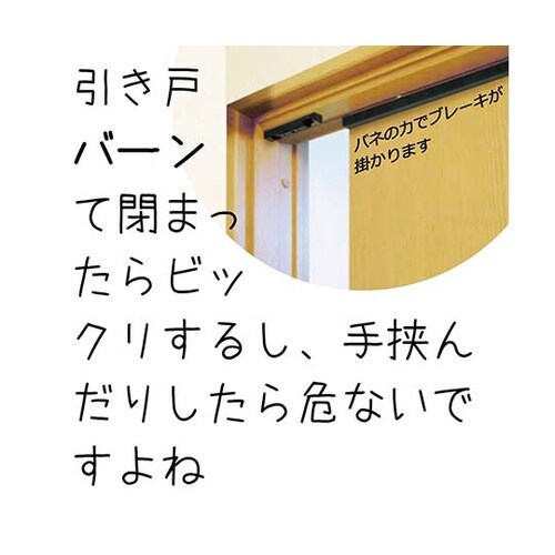 閉まる直前に、自動でゆっくり閉まるので、衝突音が少ない。左・右閉じ引き戸両方に対応。室内の木製引き戸専用 |
