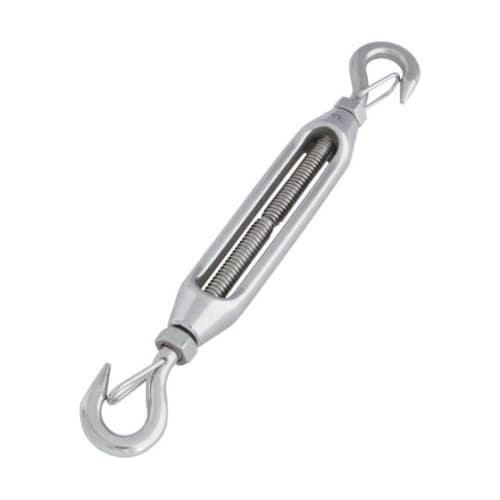 枠を回転させると、緩めたり、締めたりすることができます。外れ止め付です。ワイヤロープの張り具合の調節に。 |